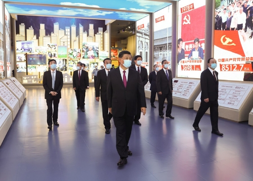 ■ 黨的歷史是最生動、最有說服力的教科書。我們黨的一百年,是矢志踐行初心使命的一百年,是篳路藍(lán)縷奠基立業(yè)的一百年,是創(chuàng)造輝煌開辟未來的一百年。回望過往的奮斗路,眺望前方的奮進路,必須把黨的歷史學(xué)習(xí)好、總結(jié)好,把黨的寶貴經(jīng)驗傳承好、發(fā)揚好,銘記奮斗歷程,擔(dān)當(dāng)歷史使命,從黨的奮斗歷史中汲取前進力量。要教育引導(dǎo)廣大黨員、干部通過參觀學(xué)習(xí),更加自覺地不忘初心、牢記使命,增強“四個意識”,堅定“四個自信”,始終在思想上政治上行動上同黨中央保持高度一致,堅定理想信念,學(xué)好用好黨的創(chuàng)新理論,賡續(xù)紅色血脈,發(fā)揚光榮傳統(tǒng),發(fā)揮先鋒模范作用,團結(jié)帶領(lǐng)全國各族人民,更好立足新發(fā)展階段、貫徹新發(fā)展理念、構(gòu)建新發(fā)展格局,全面做好改革發(fā)展穩(wěn)定各項工作,匯聚起全面建設(shè)社會主義現(xiàn)代化國家、實現(xiàn)中華民族偉大復(fù)興中國夢的磅礴力量
